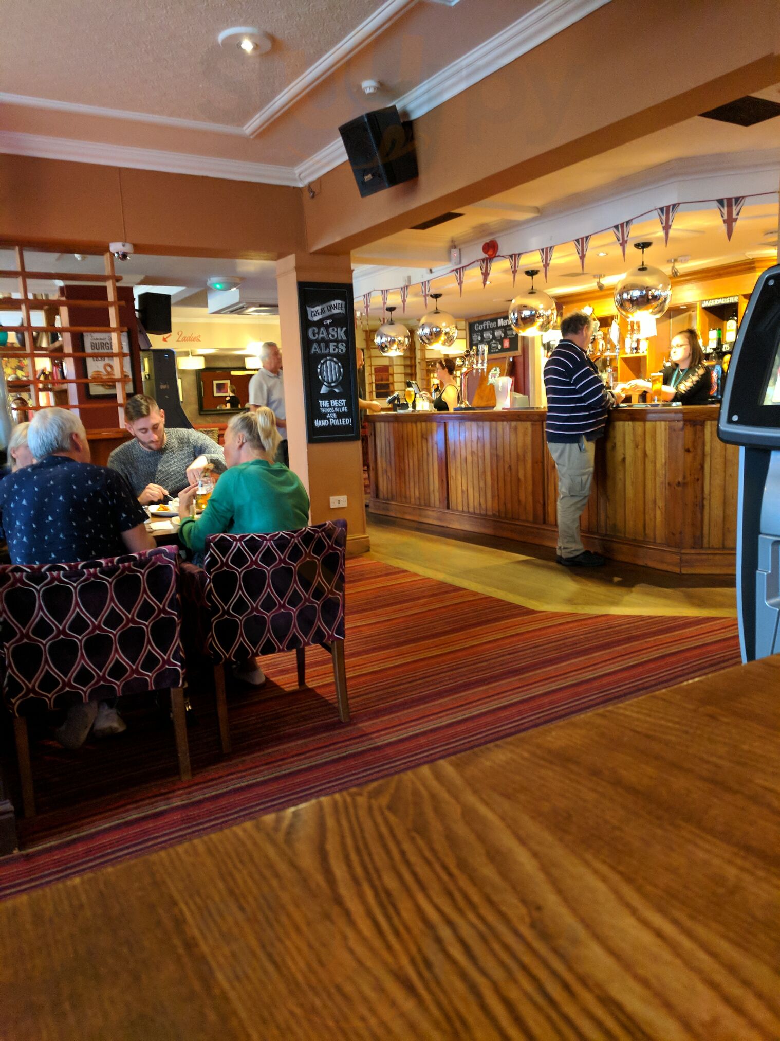 Great local pub. Large with variety of seating areas. Good food and a selection of real ales. Live entertainment as well as sky TV for sports in some sections of pub but can be avoided by sitting in other areas if that's not your thing.