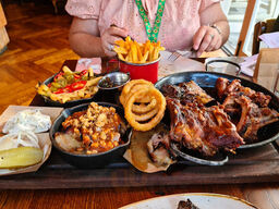What a great place to go. The staff are super friendly and helpful, the food is fantastic and not too expensive, plus the cinema for the kids is a brilliant way to stop the end of meal boredom /restlessness. Would highly recommend this and the other Hickory's restaurants. Oh, and the way they presen