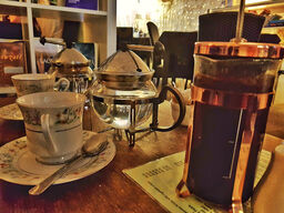 Just randomly fell upon this place wanting a quick brew and a cake. Sat outside watching the world go by and was delivered freshly ground superb coffee in a french press with delightful little cups. Husband had rocky road which he said was a good balance of all ingredients with a good bitter chocola