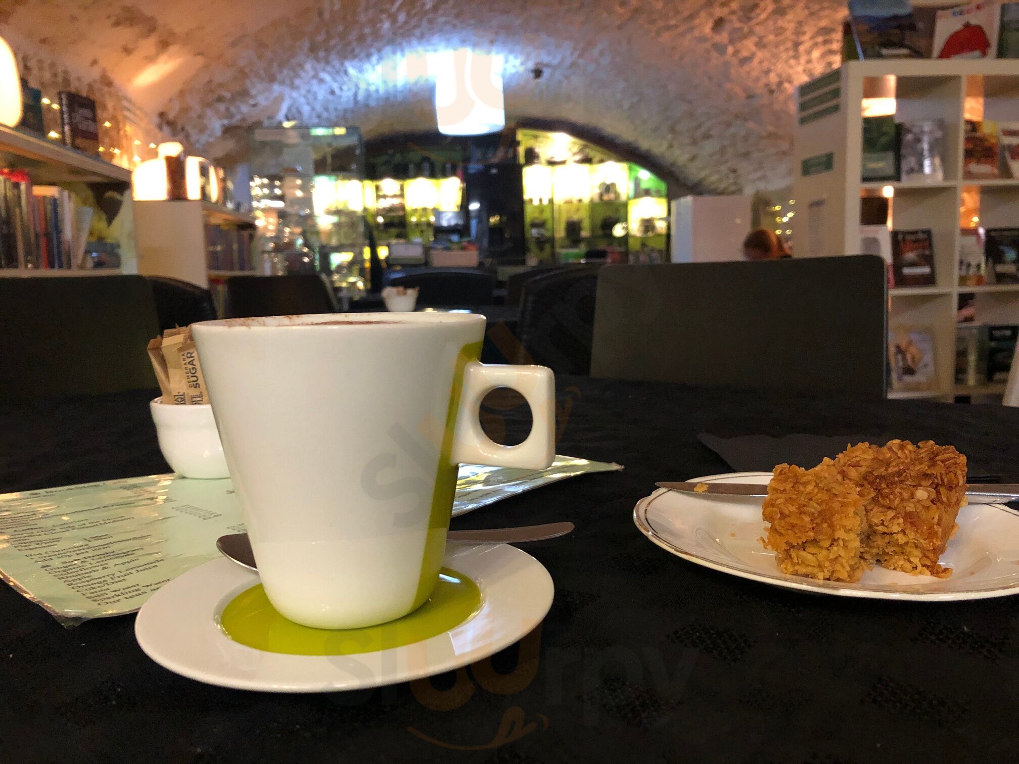 Absolutely great! The guy serving was really friendly despite being busy and having to cope by himself. The atmosphere of the cafe was great. A relaxed feel and the place was definitely what the name suggests. If you want cake, coffee and you love books I'd say this place was definitely worth a try.