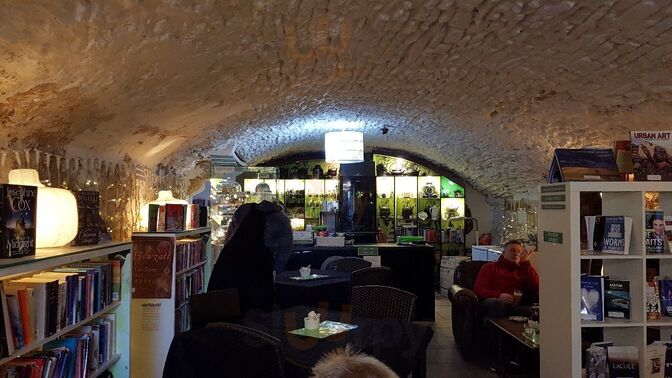 Cosy place with good coffee and tea. You can also buy secon hand books. But there are no restrooms.