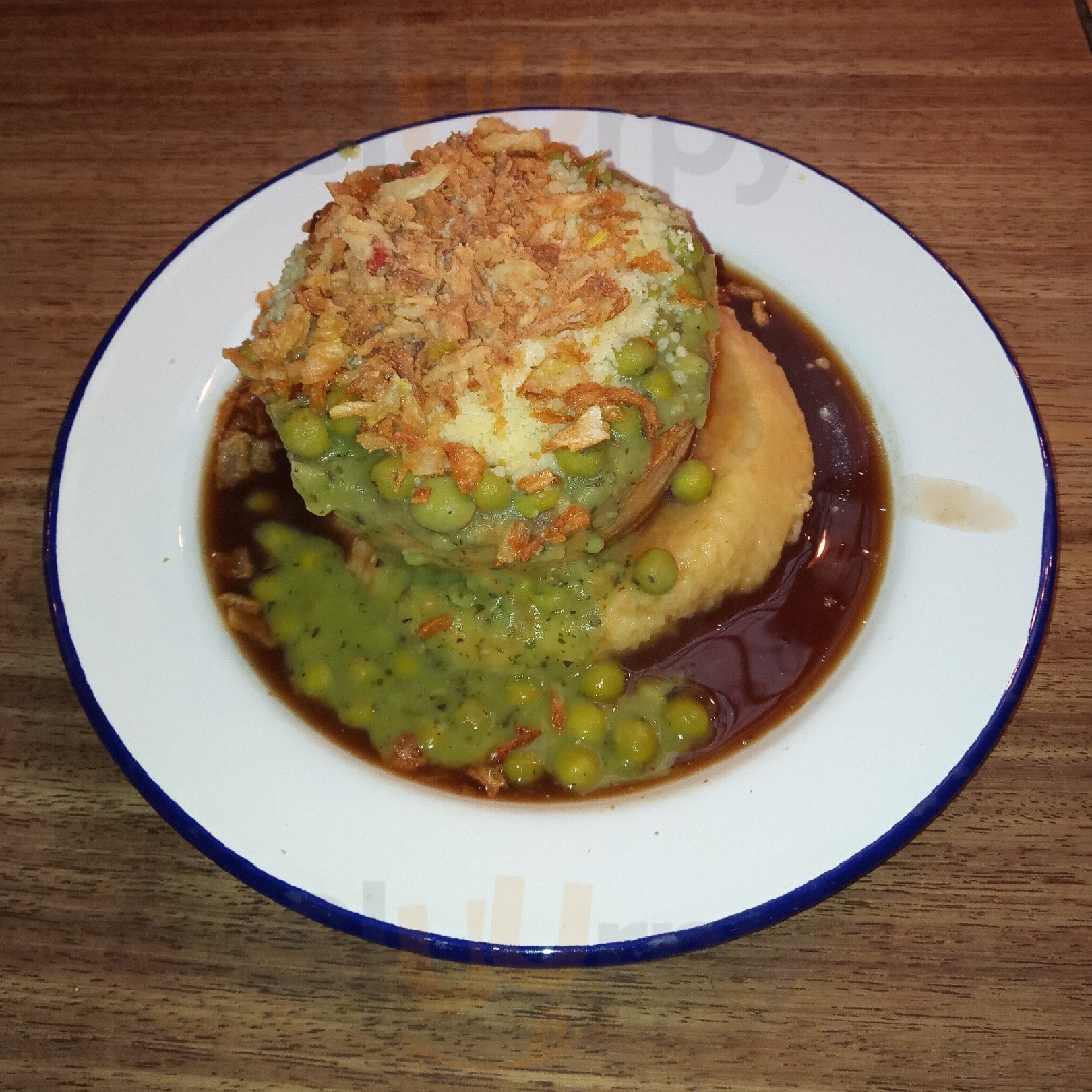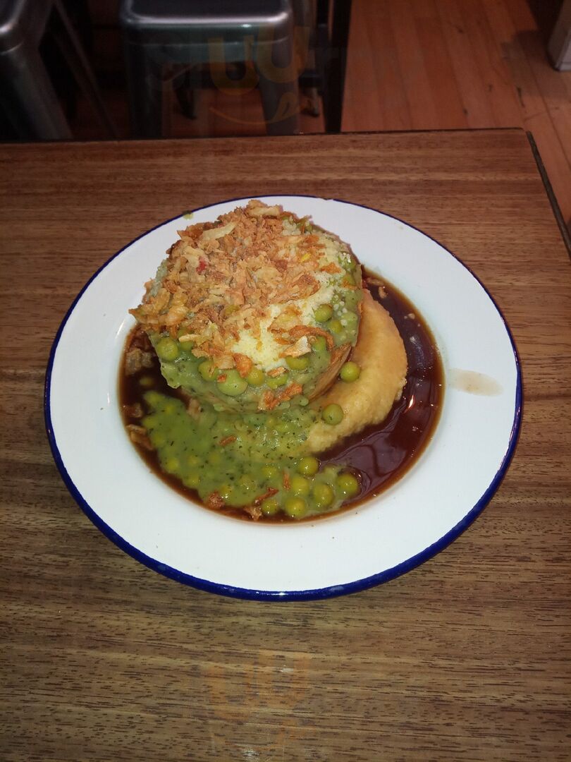Takeaway and small inside dining establishment with great vegan options. We had the "steak" (jackfruit) and ale pie with vegan mash, minted mushy peas and gravy. Quintessentially English, thankfully vegan. Will visit again!!