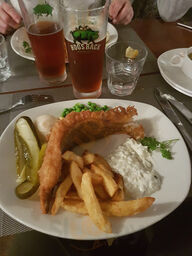 We had really lovely fish and chips from Sea Salt last night. Perfectly cooked fish, that was tasty and in a really light, crispy, and non-greasy batter, with excellent chips that were crispy on the outside, and nice and soft in the middle. Great value at ยฃ9 per portion, and we actually had enough c