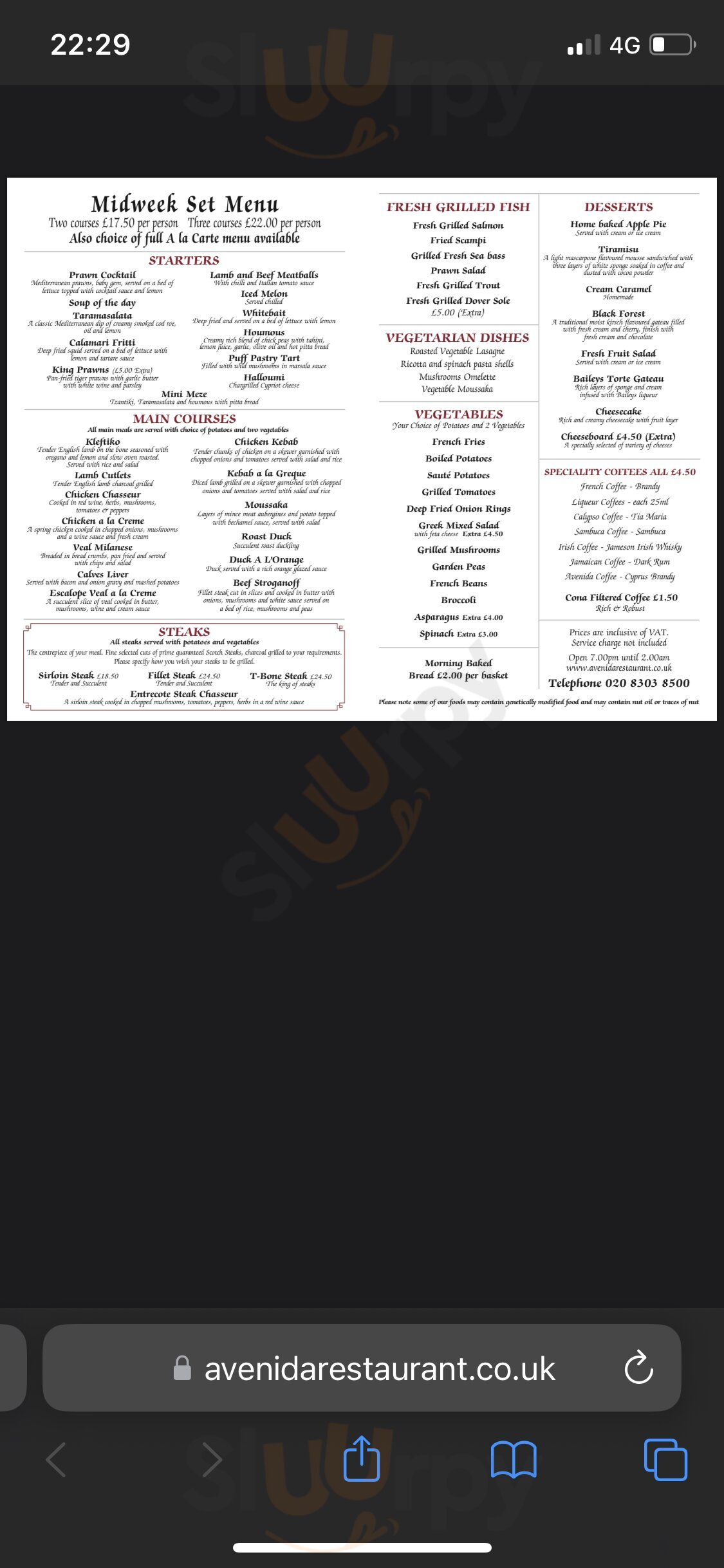 A fantastic night out. We went in the hope that we could get a table and we got lucky. There was a set menu and it was excellent value. Garlic Prawns for me, veal in cream wine and mushroom sauce and the tastiest tiramisu ever. Everything perfectly cook. My wife had a steak, and apple pie for afters